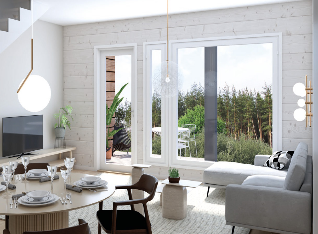 Vapaat asunnot ovat 4h,k,wc,s,terassi ja parveke -koteja, hinnat 319.000 – 329.000 euroa. Hirsirakenne merkitsee myös edullisia asumiskustannuksia.